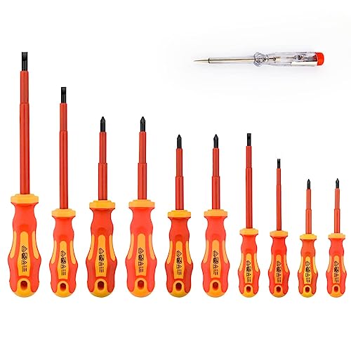CCLIFE 9 stycken VDE-isolerade skruvmejslar inkl. spänningstestare Slotted & PH & PZ Set
