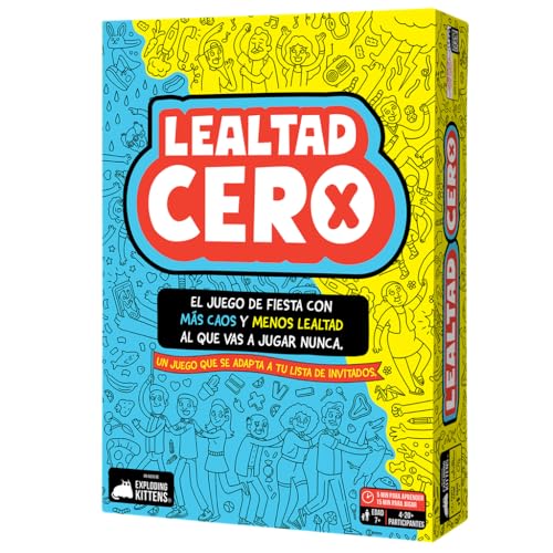 Exploding Kittens Nolllojalitet, konkurrenskraftigt kortspel, strategi och svek, från 7 år, från 2 till 20 spelare, 20 minuter per spel, spanska