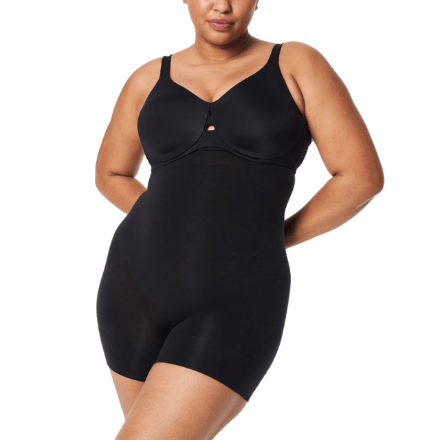 Spanx Dam Power öppen byst mitt på låret bodysuit shapewear, Väldigt svart, XXL