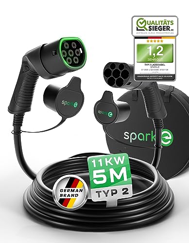 SPARK-E Typ 2 laddningskabel 11 kW 5 m för EV-elbilar – inkl. väska, 16A3P, mode 3 – vägglåda-kompatibel