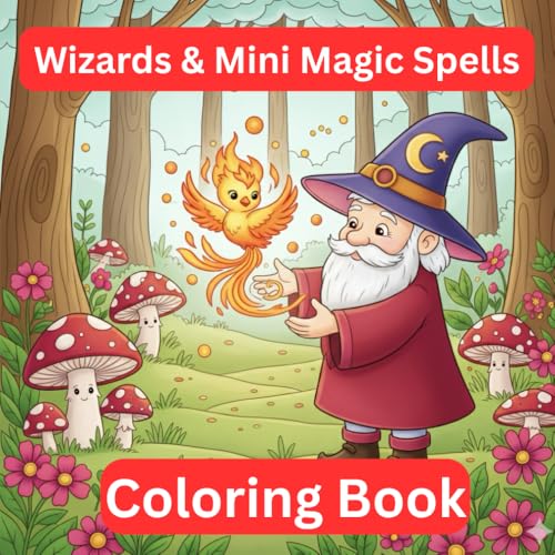 Pocket Wizards & Mini Magic Spells Coloring Book for Adults & Teens: Cute Tiny Wizards, Magical Creatures, Spark Spells & Whimsical Fantasy Scenes for Stress Relief