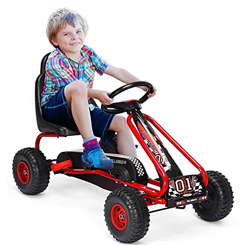GOPLUS Gokart från 3 år, gokart med justerbar sits, fram- och bakåtväxel, sparkbil med gummihjul, flexibel koppling och handbroms, barnfordon för barn 3–8 år (röd)