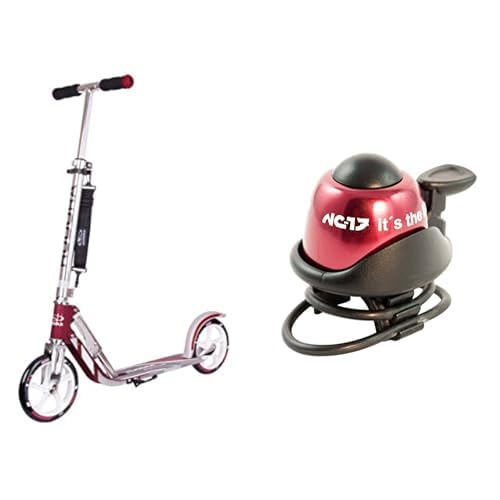 HUDORA Big Wheel 205 14764/01 Sparkcykel, Rosa, Silver, En Storlek & NC-17 Säkerhetscykelklocka/cykelklocka i aluminium för alla cyklar/cykelhorn/tydligt hörbart ljud/6, röd