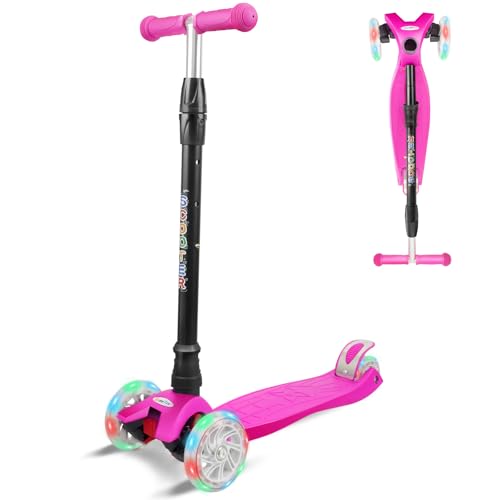 Kicknroll Skoter barn 3 år – 6 år från småbarn, pojke, flicka, vikbar skoter med 4 höjdjusterbar, LED-hjul, lysande pedal – premium trehjuling, sparkcykel, styre för barn