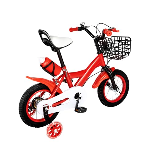 XUEMANSHOP 12 tums barncykel med stabilisatorer, dubbelbromsteknik sparkcykel cykling cykel cruiser cykel för barn från 3 år (röd cykel)