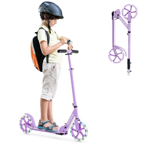 COSTWAY Skoter för barn, sparkcykel med LED-hjul, fällbart styre, justerbar höjd, skoter, stadsskoter, sparkcykel för pojkar och flickor från 3 år (lila)