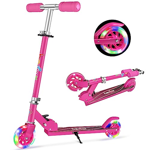 BELEEV Sparkcykel med 2 hjul, vikbar, för barn, flickor och pojkar, med lysande LED-hjul, 3 justerbara höjder, stöd, från 3–12 år (rosa (Rose Pink))