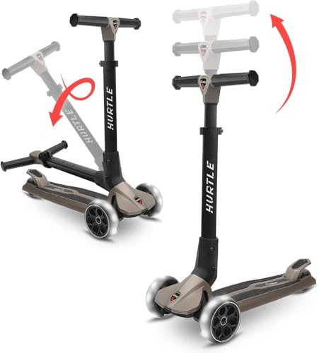 Hurtle Sparkcykel med 3 hjul för barn – hopfällbar, med LED-lampor, halkfri fotbräda, justerbar höjd, perfekt för utomhusunderhållning