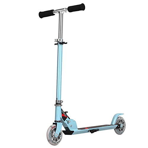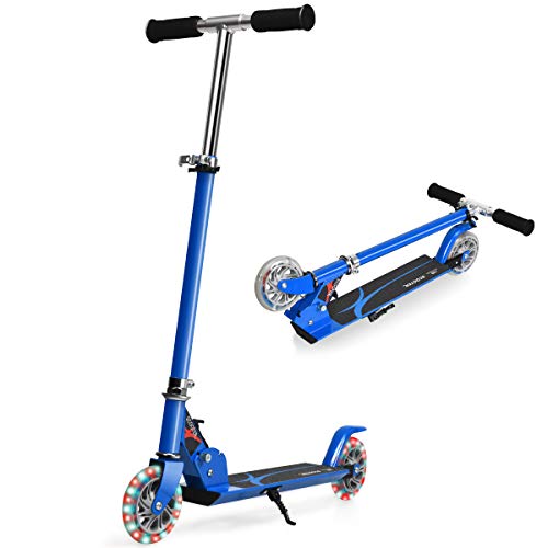 COSTWAY Barnskoter med LED-hjul, sparkcykel barn från 4 år, stadsskoter justerbar höjd, sparkcykel för pojkar och flickor (ljusblå)