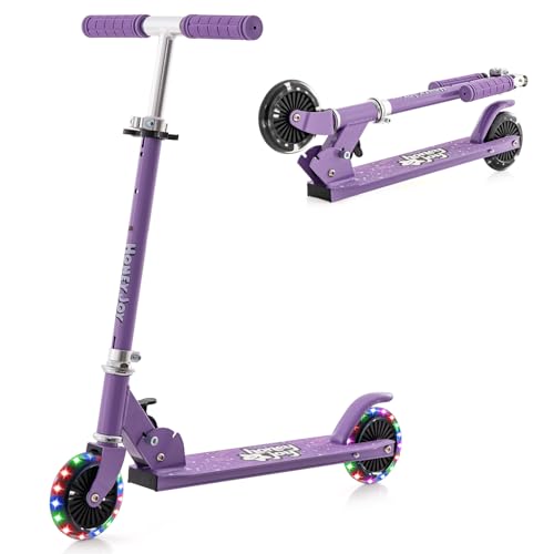 COSTWAY Skoter för barn, sparkcykel med LED-hjul, fällbart styre, justerbar höjd, skoter, stadsskoter, sparkcykel för pojkar och flickor från 3 år (lila)
