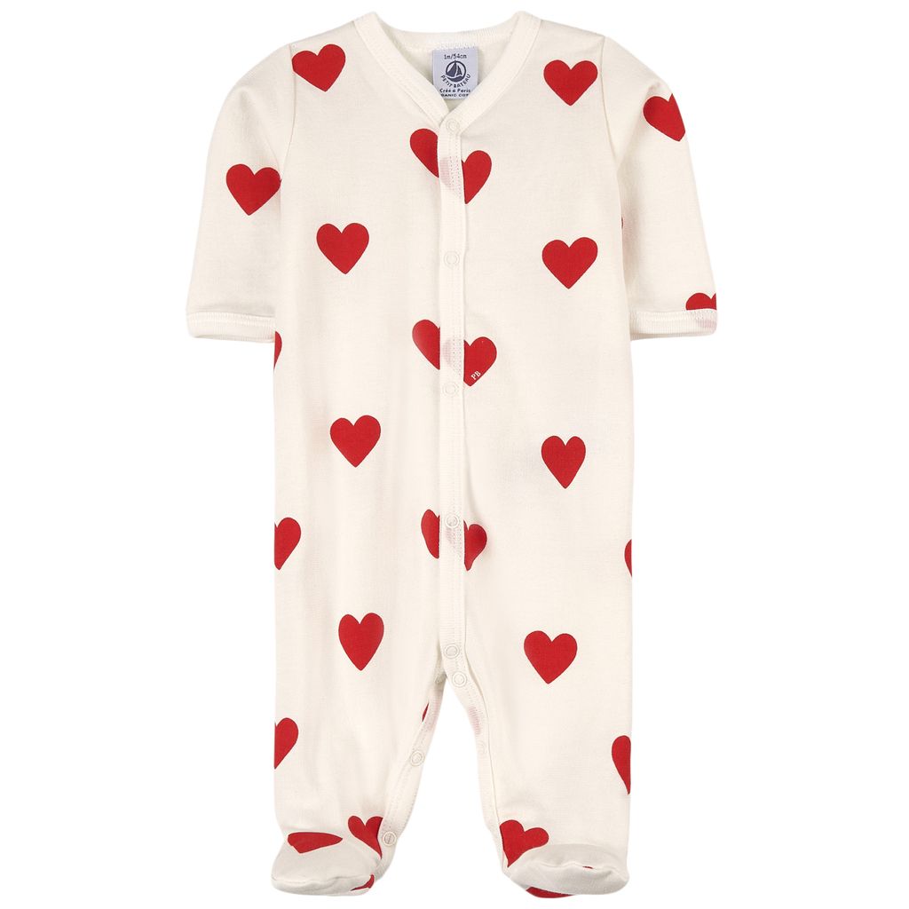 Petit Bateau Hjärtmönstrad Sparkdräkt Gräddvit 12 months Vit Hjärtan 12 månader kvinna