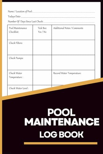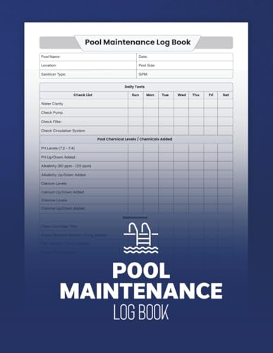 Pool Maintenance Log Book: Water Testing & Cleaning Log for Sparkling - Track Chemical Levels, Cleaning Routines, and Equipment Checks to Keep Your Pool Clear and Balanced