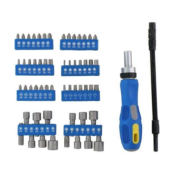 42 I 1 RATCHET SCREWRIVER SET, Magnetisk Spärrskruvmejsel med Löstagbart Handtag, Färgkodade Cirklar, Bärbart Kompakt Reparationsverktygssats för Möbler