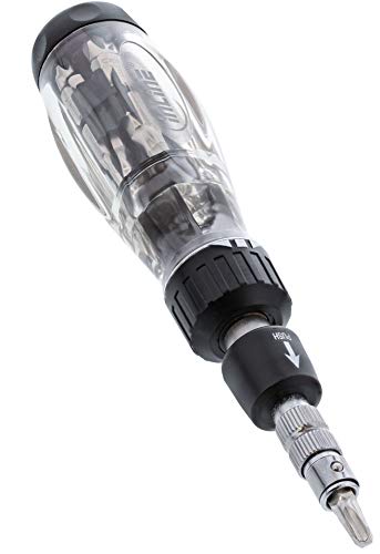 Klein Tools 32305 multibit spärrskruvmejsel, 15-i-1 verktyg med stjärnknappar, slitsade, fyrkantiga, torx- och kombobitar och 1/4-tums mutterdragare