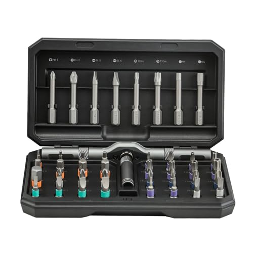 Hi-Spec 56-delad precisionsverktygssats – spärrskruvmejsel, Pozidriv, triangel, femhål och sexkantsbitar för datorer, telefoner och bärbara datorer
