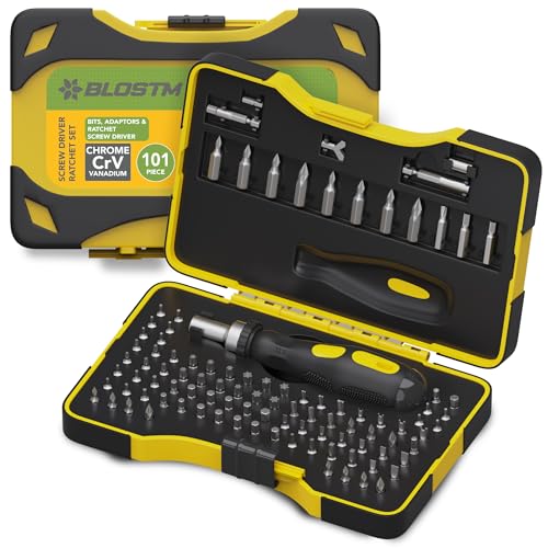 BLOSTM 101-delad magnetisk spärrskruvmejsel och säkerhetsbit set – multifunktionell Cr-V 1/4 tum skruvmejsel bits och adaptrar (hex, stjärna etc.) för gör-det-själv, dator och elektronik reparationer