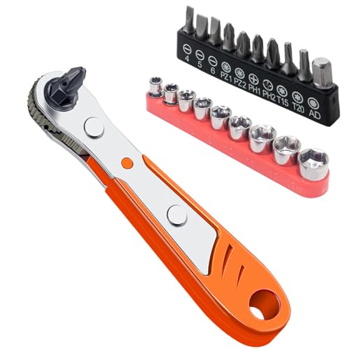 DURATECH Spärrskruvmejsel 6-in-1, bitsskruvmejsel Skruvmejsel med spärrfunktion för snabb skruvning och lossning utan att behöva sträcka sig, 1/4"& 5/16"sexkant, 2 slitsade/hilips bits