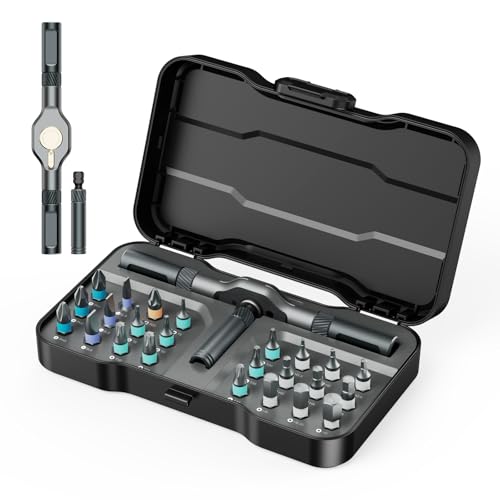 Ankilo Spärrskruvmejsel med 24 magnetiska bitar, manuell magnetisk spetssats med avtagbart spärrhandtag, bärbar reparationsverktygssats för bilar, datorer