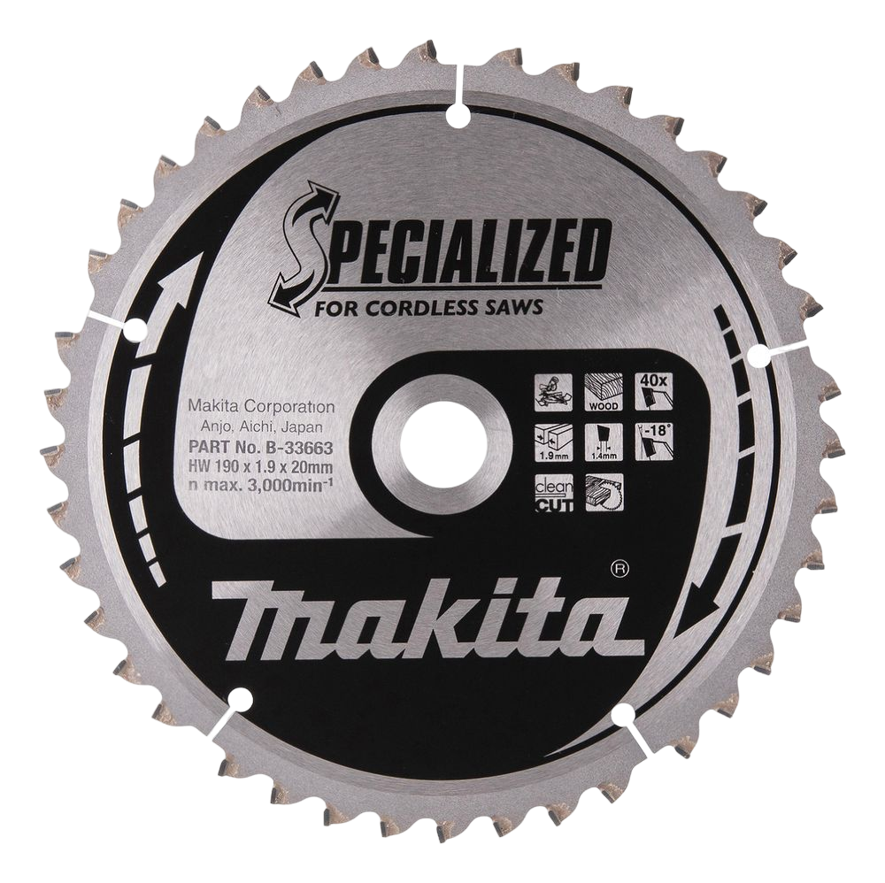 MAKITA Sågklinga, Specialized T.C.T, 190 x 20 mm, 40 T