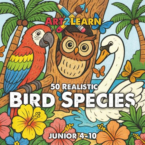Art2Learn Educational Colouring: 50 Bird Species to Colour & Learn (Juniors 4-10 years): Science-Backed Activities to Develop Focus, Language, and Emotional Wellbeing (ADHD friendly)