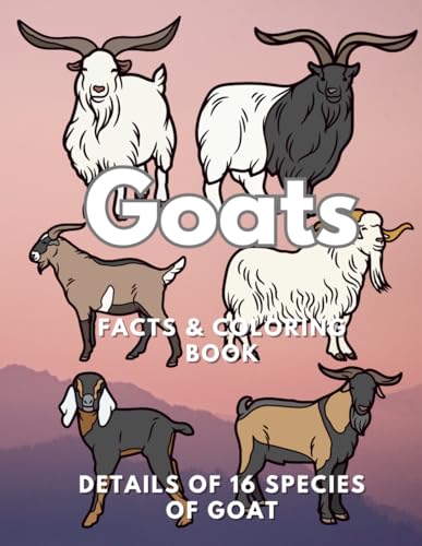 Goats: Facts & Coloring Book, Details of 16 species of goat: Colouring Activity Book for Children Aged 2 to 16 Years