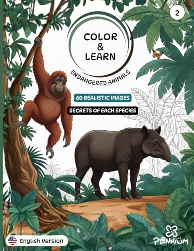 COLOR & LEARN: Endangered Animals | 60 New Realistic Illustrations + Fun Facts About Each Species | Educational Coloring Book for Kids Ages 3+ (Volume 2)