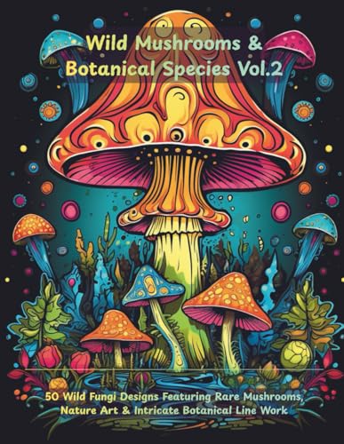Wild Mushrooms Coloring Book Vol.2: Botanical Fungi Species, Detailed Mushroom Illustrations for Adults: 50 Wild Fungi Designs Featuring Rare Mushrooms, Nature Art & Intricate Botanical Line Work