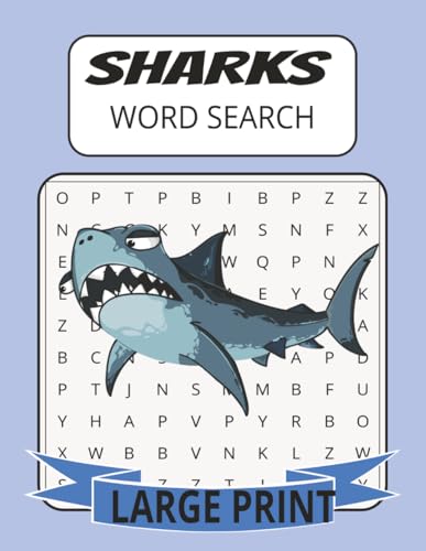 SHARKS WORD SEARCH: Sharks Word Search Large Print For Adults and Seniors About Sharks, Sharks Anatomy, Species and more 8 1/2 by 11 inches, 110 Pages, 50 Plus Puzzles