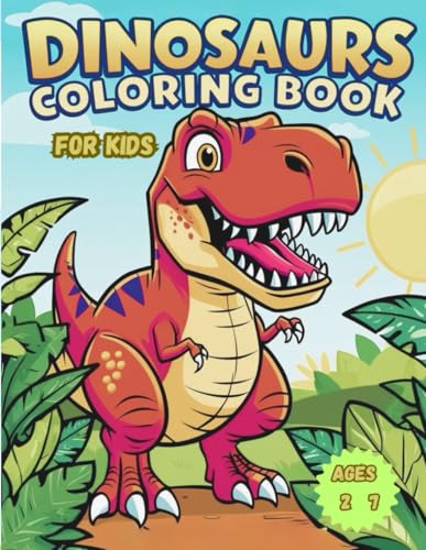 Dinosaur Colouring Book for Kids: Easy, Bold and Cute Designs Featuring T-Rex, Velociraptor and Many More Dinosaur Species and Scenes (Ages 2-6).