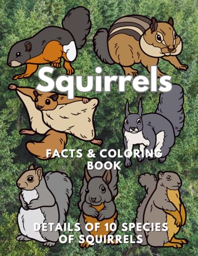 Squirrels: Facts & Coloring Book, Details of 10 species of squirrels: Colouring Activity Book for Children Aged 2 to 16 Years