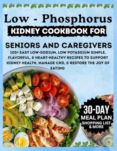 Low-Phosphorus Kidney Cookbook for Seniors and Caregiver: 100+ Easy Low-Sodium, Low Potassium Simple, Flavorful, & Heart-Healthy Recipe to Support Kidney Health, Manage CKD,& Restore the Joy of eating
