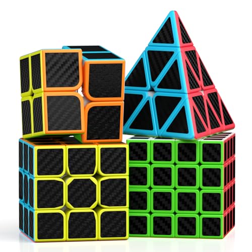 ROXENDA Magisk Kub, Speed Cube Set Med 2x2 3x3 4x4 Pyramid Magisk Kub (Kolfiber)