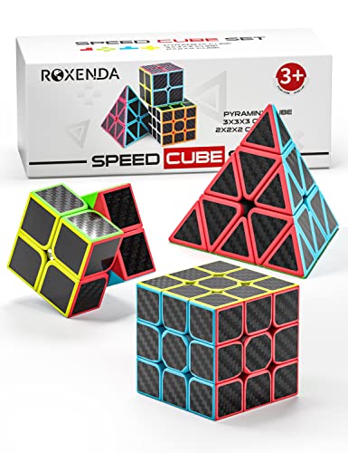 ROXENDA Magisk Kub, Speed Cube Set med 2x2 3x3 Pyramid Magisk Kub (Kolfiber)