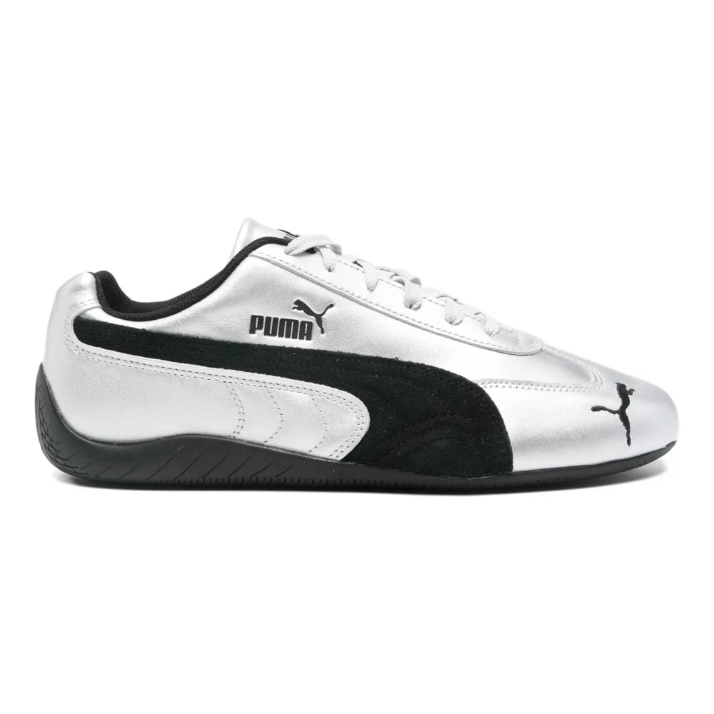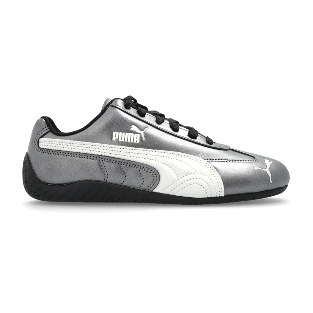 Puma, Skor , Dam, 40 1/2 EU, Läder, Speedcat Silver Logo Print Sneakers