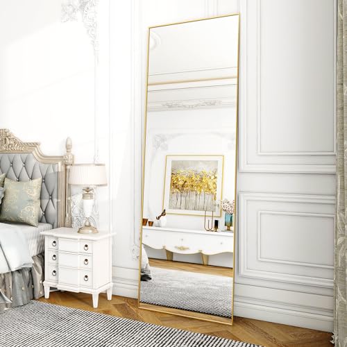 Koonmi 140 x 40 cm stående spegel, minimalistisk ram, solid fristående helkroppsspegel, lätt spegel i full längd, hängande på väggen, horisontellt eller vertikalt, guld