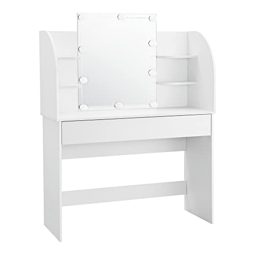 ECD Germany Klädbord med LED-belysning, spegel, låda, fack, 108x40x140 cm, vitt, modernt, MDF-trä, kosmetikbord för sovrum, klädbord klädbord byrå med lådor