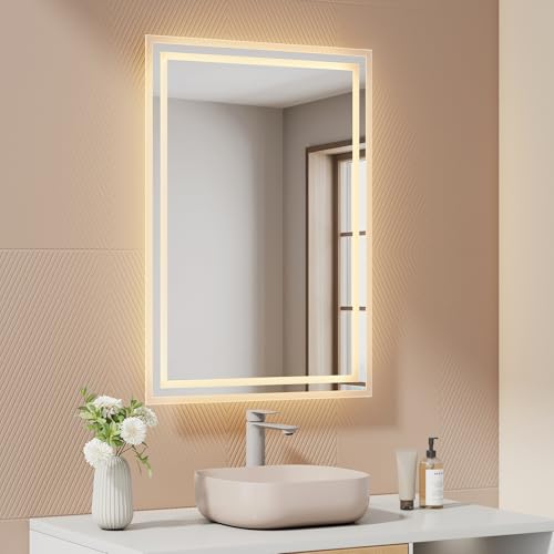 EMKE Badrumsspegel med belysning, 50 x 70 cm, LED-spegel för badrum, varmvitt ljus 3 000 K, väggmonterad spegel med belysning, horisontellt/vertikalt, energibesparande IP44