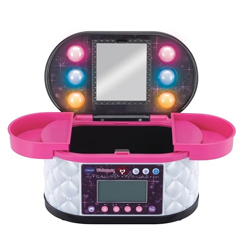 VTech - Hemlig sminkväska, interaktiv smyckeskrin, personlig kod, spegel, leksak barn +5 år, svart färg, LCD-skärm, magiska aktiviteter, Bluetooth, radio, ESP-version