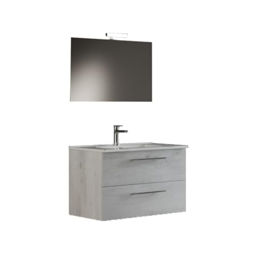 MaMa Store IRIS 100 hängande badrumsskåp i 100 cm vit ek med handfat, spegel och LED-lampa, L 101 x D 47 x H 53 cm