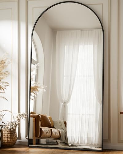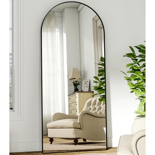 BEAUTYPEAK båge helkroppsspegel, 181 x 63 cm välvd stående spegel, stor i full längd, väggmonterad, lutande, golvspegel, helkropp som omklädning, fåfänglighetsspegel för vardagsrum, svart