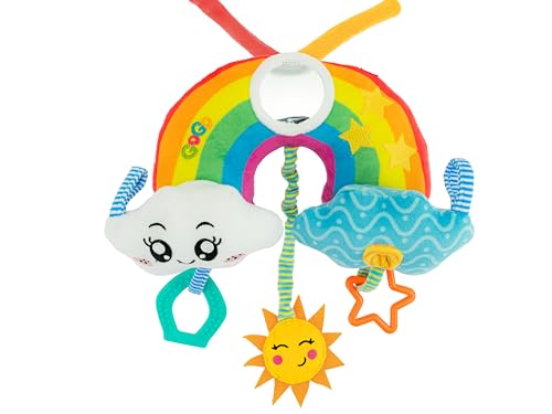 Theorema Spädbarn regnbåge speldosa med tandköttsmassage, krokar, spegel och melodi för vaggan