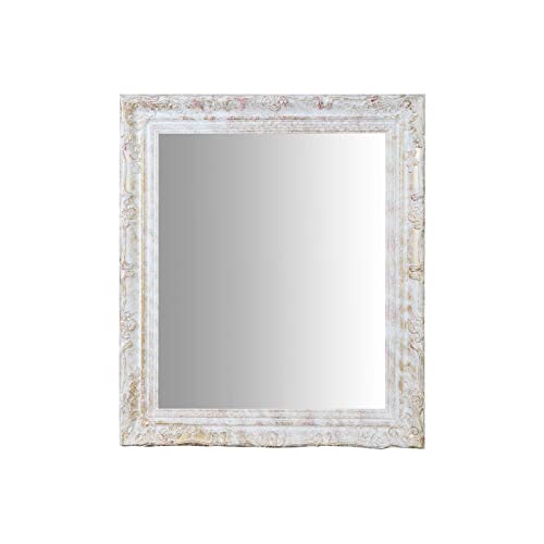Biscottini Väggspegel för badrum och sovrum 30 x 3 x 26 cm | Väggspegel med krokar | Vit spegel