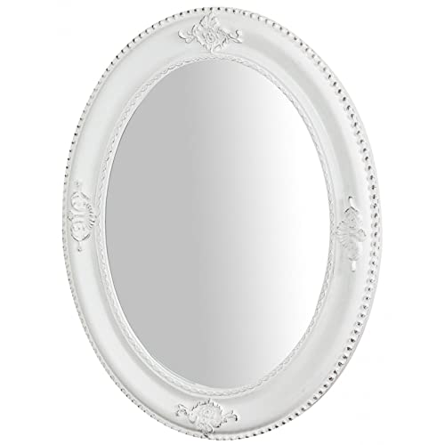 Biscottini väggspegel för badrum och sovrum 66 x 86 x 5 cm | Väggspegel med krokar | vit spegel