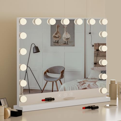 Teousev Sminkspegel med belysning, 80 x 60 cm Hollywood-spegel med 17 LED-lampor, dimbar sminkspegel för makeup