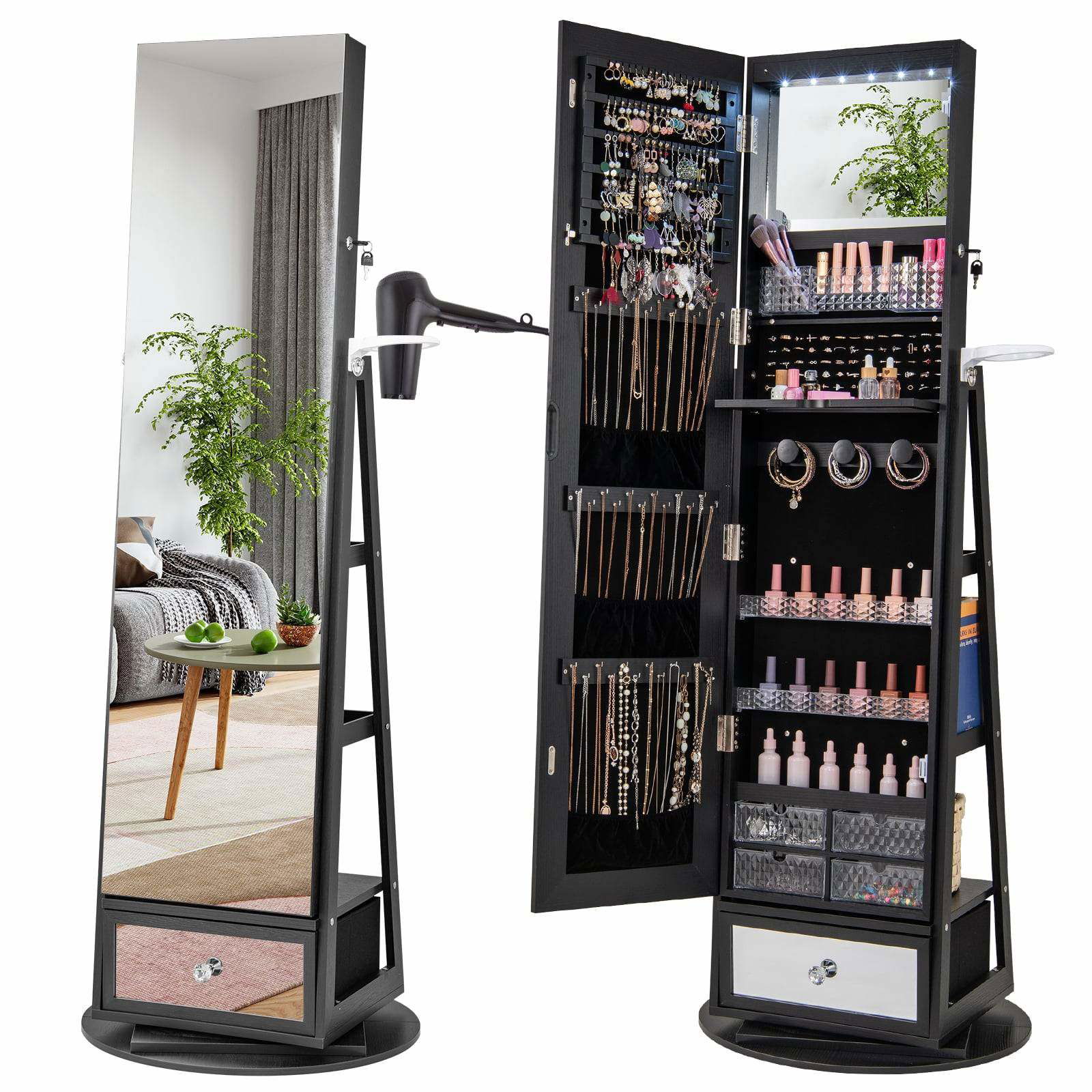 360 graders roterande smyckesskåp med spegel och LED-lampor