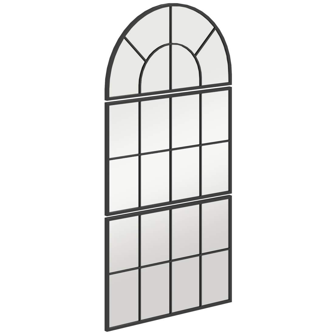 Väggspegel tre delar bågformad spegel med metallram dekorativ fönsterspegel hängande spegel för badrum vardagsrum svart