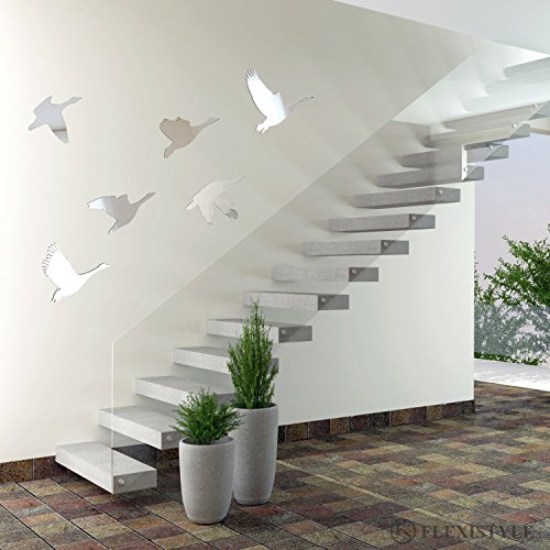 FLEXISTYLE dekorativ spegel swans, modern designdekoration, 3 mm akrylspegel från EU, vardagsrum, sovrum, hall, okrossbar, gör-det-själv-hemtextilier, silver, tillverkad i EU