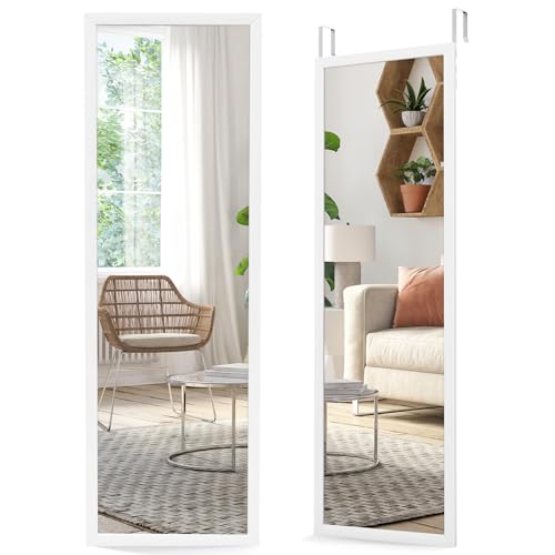 COSTWAY Väggspegel, dörrspegel, hängande spegel, helkroppsspegel med höjdjusterbara hängkrokar, spegel för sovrum, vardagsrum och entré, 120 x 37 cm (vit)