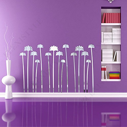 FLEXISTYLE dekorativ spegel blomma 1, modern design dekoration, 3 mm akrylspegel från EU, vardagsrum, sovrum, korridor, okrossbar, gör-det-själv hemtextilier, silver, tillverkad i EU