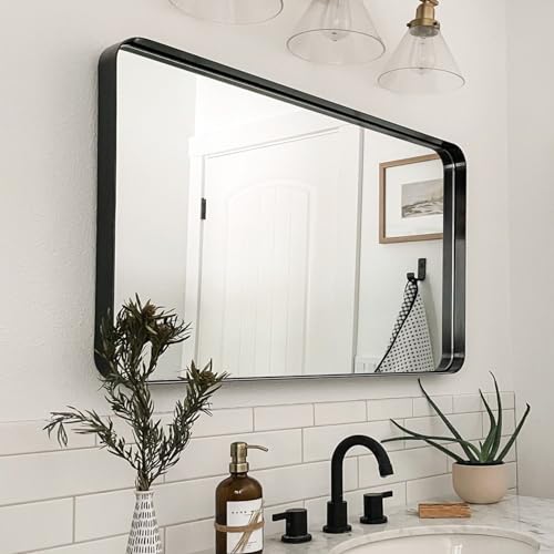 Melodieux Svart badrumsspegel för vägg, 75 x 100 cm metallinramad väggspegel rektangel, dekorativ spegel för sovrum vardagsrum entré horisontellt eller vertikalt